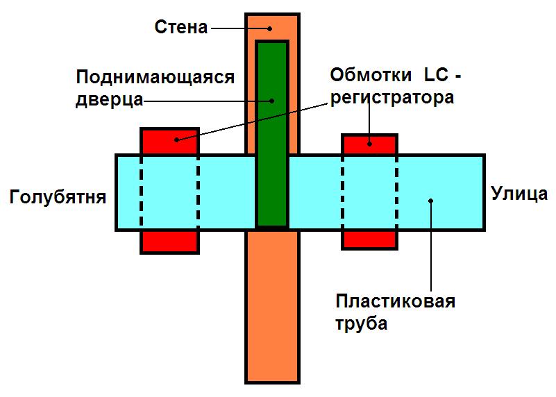 По способу применения: в леток вставить трубу. С двух сторон на трубу повесить LC-регистраторы. Времени, которое голубь будет по трубе шлепать к дверце, как раз хватит и на считывание метки и на открытие СД-рома. Пока голубь с меткой в трубе - дверца открыта. Когда в трубе метки нет - закрыта. Так решается проблема со случайным гильотинированием голубя дверцей.