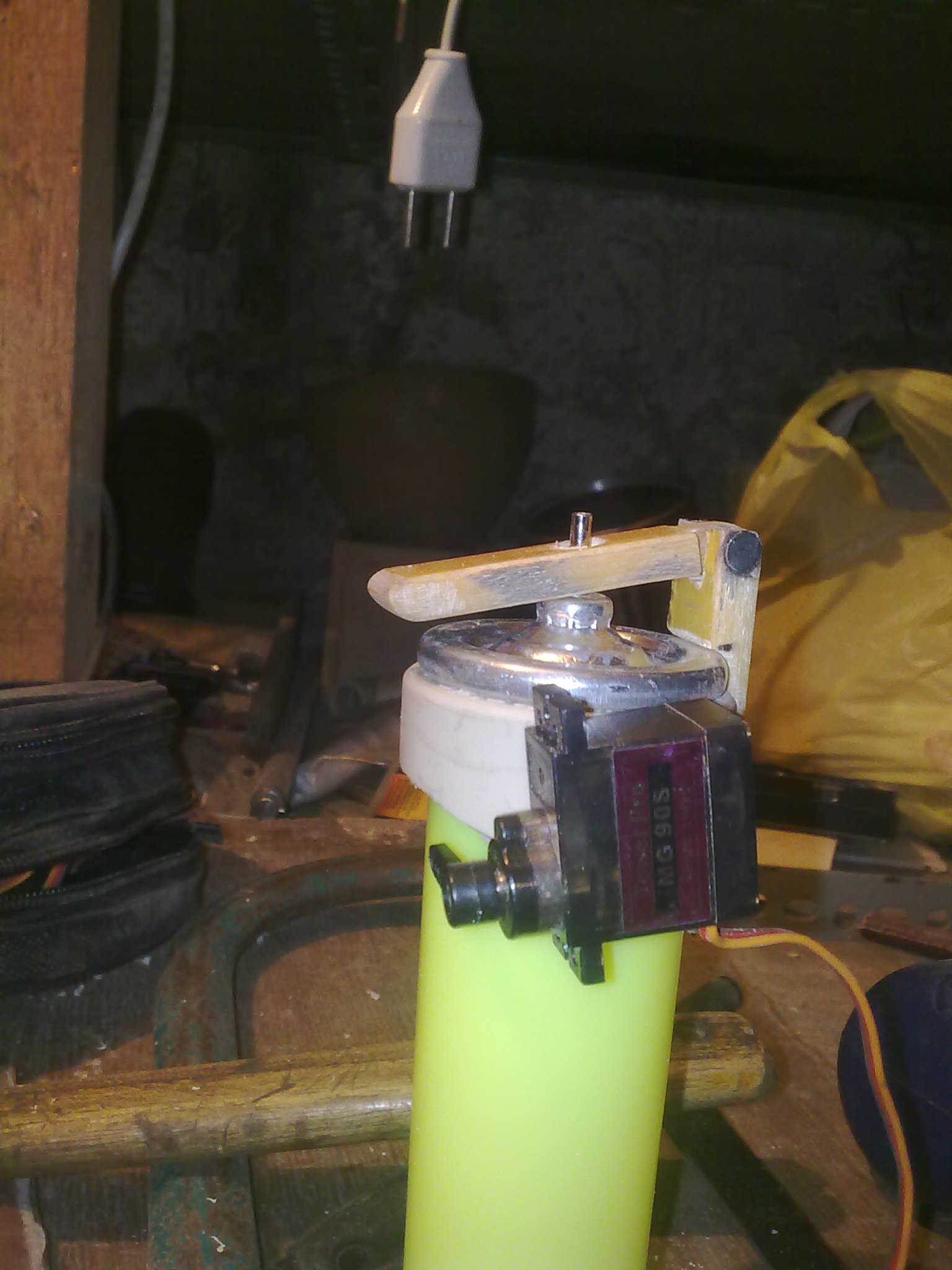 Наличие микроконтроллерного управления в устройстве вообще сомнительно. Гораздо проще, безопасней и более контролируемо если бы тажка-поводок от кисти руки напрямую управлял-бы клапаном газа.[/quote] я меня балон задуман так , что находца на спене.Тоесть,небудет перекидания балона,и непредсказуемой (как на видео) подачи газа у меня используеца балон для заправки зажигалок сверху серва, с важелем или ексценриком. от него трубочка к руке,а паралельно к ней 3 провода на серво и +5 вольт от батареи (минус общий с серво) вот такая вот мысля