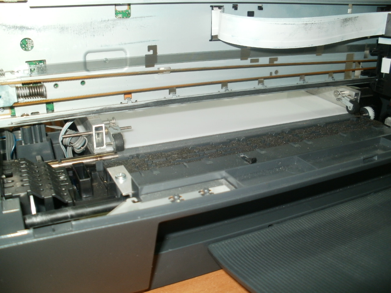 Недавно прочитал тему о переделки принтера для печати на печатных платах , решил попробовать , купил принтер EPSON C79 . Переделал под лоток из стеклопластика , установил направляющие , приподнял узел печатающей головки с приводом на 3 мм. PA312731.JPG