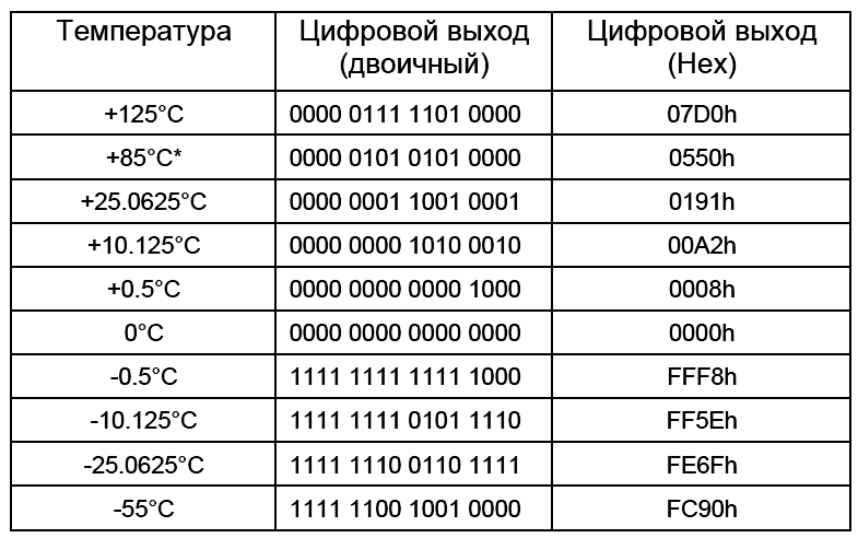 Изначально я думал, что весь диапазон измерений DS18B20 поделен на равные промежутки, как, к примеру, шкала температуры по Кельвину, но разработчик точкой преломления сделал температуру тающего льда.