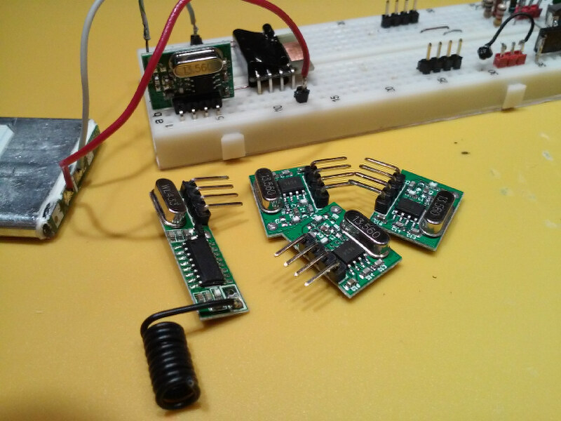 Приехали мои радиомодули с китая , на днях испытывал их на этом сигнализаторе с пейджером (далее буду называть его Сигн.2), сигнализатор прошил в режим маячка. В качестве антен: на передатчике проводок 17 см, диаметром 0.5 мм, на приемнике телескопическая антенка 16 см. Питание сигн. 3.6 вольта от лития, а в пейджере подключил новый приёмник вместо сверхрегенеративного, там 5 вольт от повышающего преобразователя. Пейджер безошибочно принимал номер сигнализатора с квартиры на 5 этаже 5ти этажки до входа в подъезд с противоположной стороны дома, и на растоянии примерно 100-120 м по прямой видимости балкона сквозь листву деревьев, в городских условиях. Честно, не ожидал такой дальности от этих модулей.