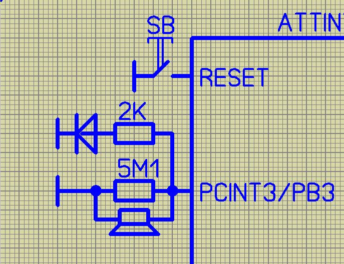 Теперь подключим "клаву" к PB4. Где "+" и "-" могут быть Ttp223, ртутные переключатели, т. е. любые датчики...
