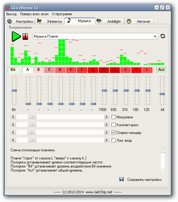 Эта вкладка будет переписана с нуля и получит целый движок для создания музыкальных световых эффектов