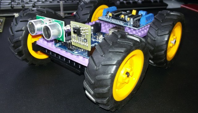 - управление тележкой может осуществляться при помощи любого ИК-пульта или при помощи Blue Tooth (реализован программный UART для этого)