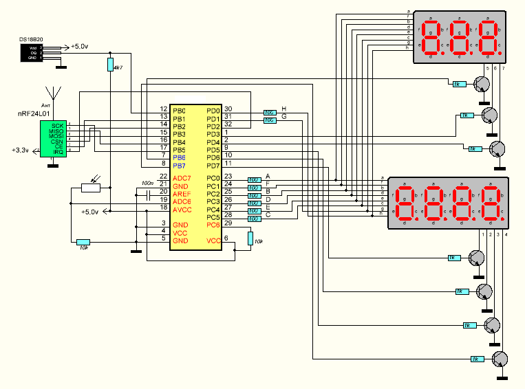 Термометр имеет фоторезистор, который следит за освещённостью. Так называемый дневной/ночной режим яркости свечения индикаторов.