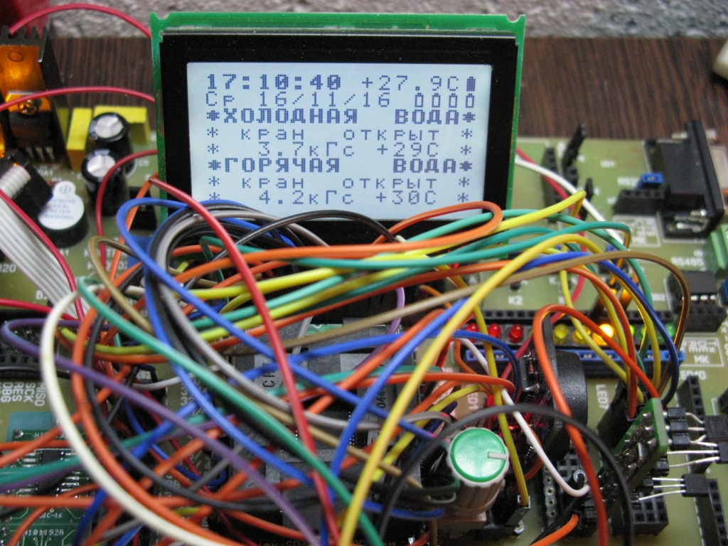 На экране просмотра событий отображается последнее произошедшее событие. В архиве та же информация, но только по всем событиям. Размер одиночного события составляет 8 байт: первый байт – информация о инициаторе события (датчик воды или иная периферия); второй байт – информация о событии; третий байт – действия устройства на событие (управление кранами); четвёртый байт – часы; пятый байт – минуты; шестой байт – секунды; седьмой байт – дата; восьмой байт – месяц.