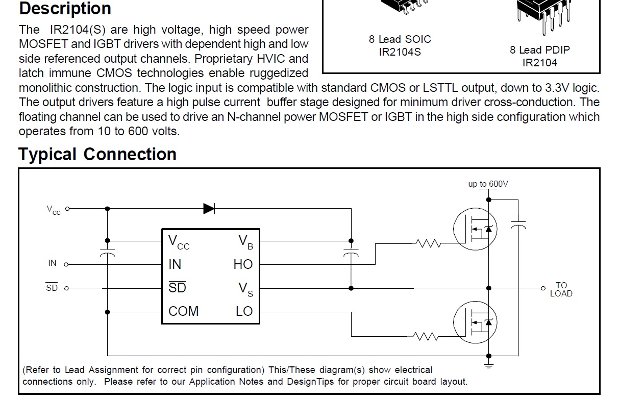 во-первых IR2104 както странно себя ведут - подаю на вход одной единицу, второй - ноль. транзисторы бывает откроются, а бывает - нет.