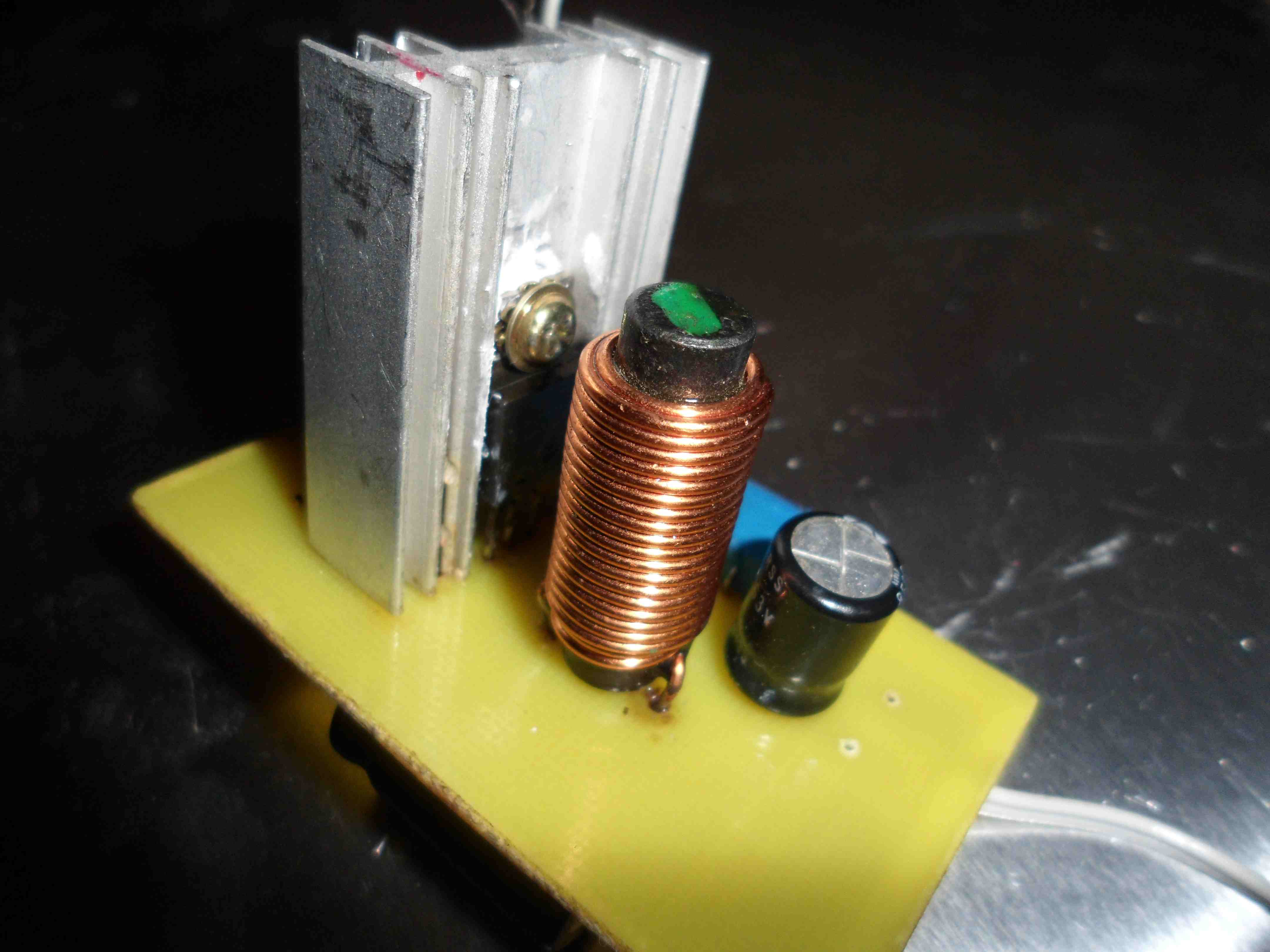 Я думал это ИК подсветка на камеру, невнимательный аки :crazy: Да. еще электролит на выходе побольше ставить надо - чем больше, тем лучше - пульсации меньше будут и просадки напряжения меньше, всеж импульсная схема. :OK: :idea: :arrow: А канифольку или флюс жизненно необходимо полностью смывать с платы - очень на частоту может влиять, а она влияет на КПД