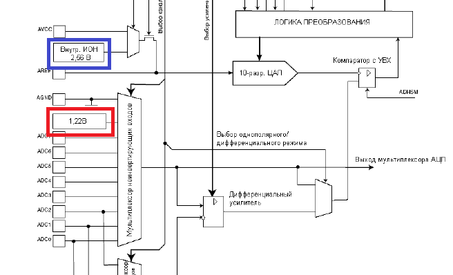 Именно по АЦП отслеживается питание без подключения ног. Вспомнил похоже видел в теме по сигнализатору поклевки но чтото перерыл все и не нашел. И видел у когото в проекте такое отслеживание , проект о чемто другом но - как сейчас помню автор еще писал "обратите внимание на способ измерения АЦП напряжения питания без использования внешних элементов и без подключения мультиплексора" - както так. Будем продолжать рыть .....
