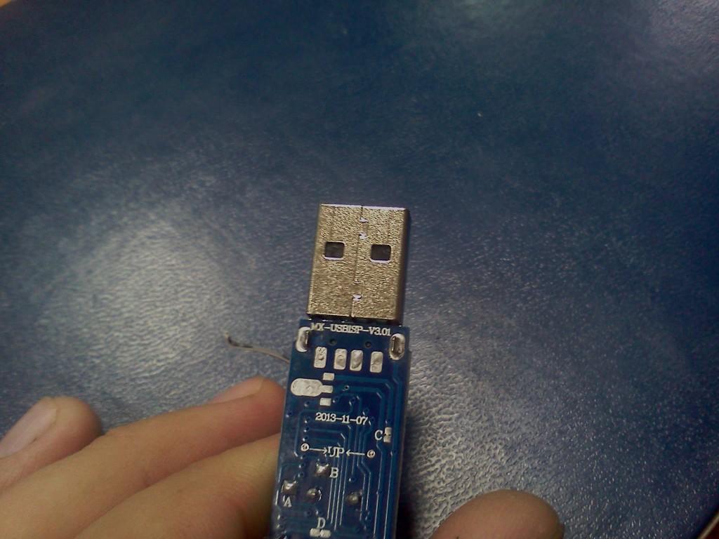 Фото завтра скину, он такой же как mx-USB ISP-3.00, только вместо 3 соединительных спаянных точек 2. ну и UP.