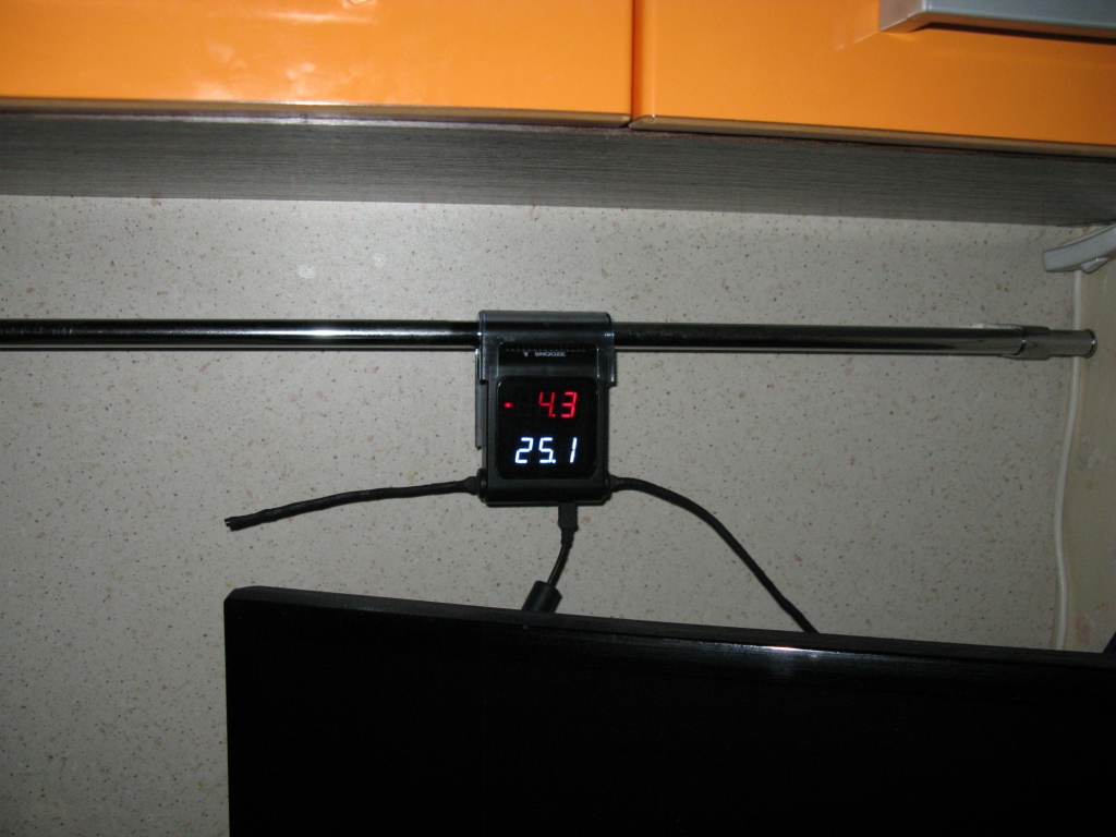 Вот сделал термометр… который показывает температуру на улице и дома… установлен на кухне.