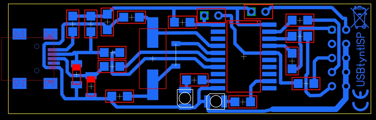 Тоже поделюсь своим вариантом разводки платы программатора. Ссылка на печатку