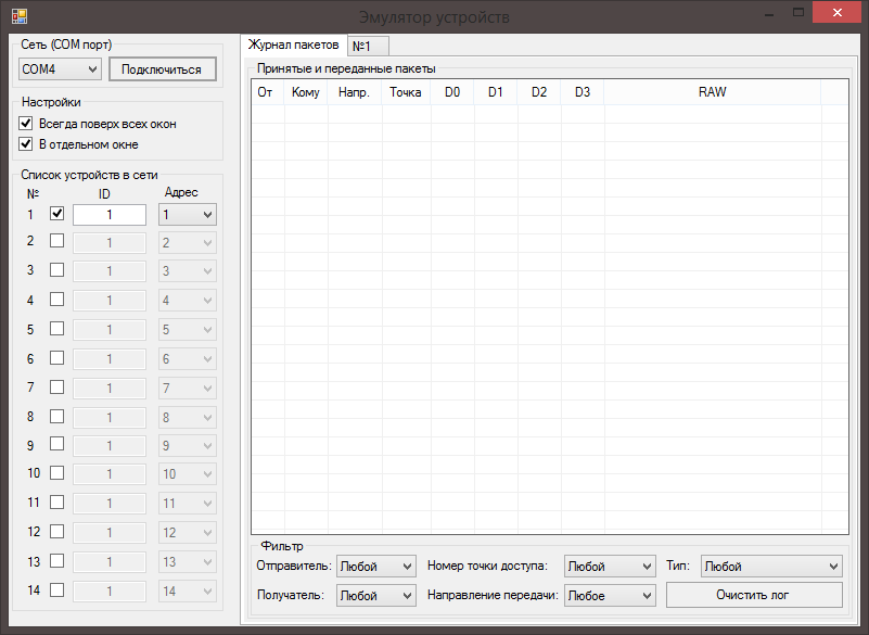 Программа ZiChip-Devices предназначена для отладки и эмуляции устройств.