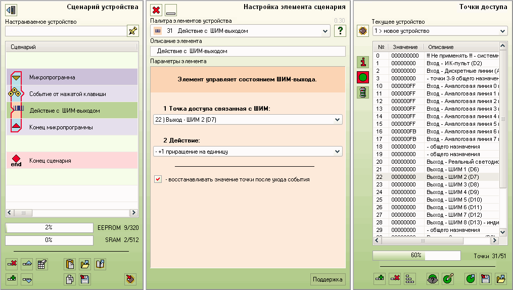 По поводу номеров ШИМ - ничего запоминать не нужно - все ШИМ можно в табличке в правом окне описать поименно (по умолчанию оно уже прописано) и это описание будет присутствовать везде в настройках.