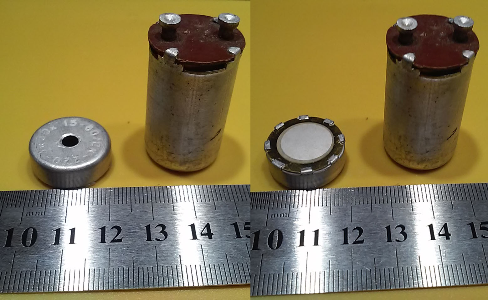 Долго думал что использовать вместо корпуса. Как по мне шприц с резиновым поршнем идеально подходит для этого дела, но вот 20 кубовый с внутренним диаметром 18 мм неудобный в том плане, что пришлось бы обрезать пьезик с 20 мм до 17 мм и второе - это дорогая и менее энергоемкая батарейка 3 вольта размера RC1632.