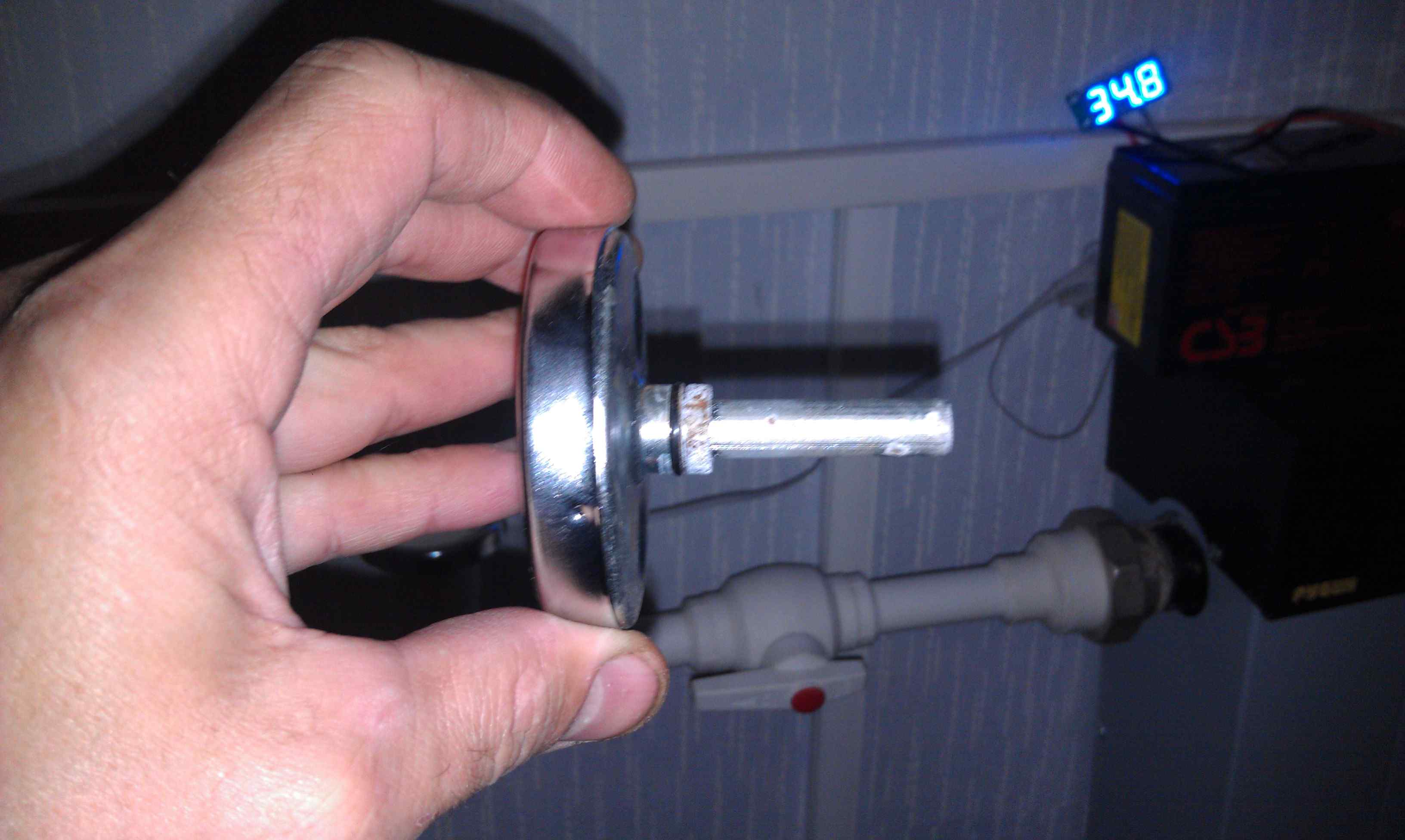 Второе и третье фото это механический термометр. У меня был один мертвый я его разобрал, он представляет некий цилиндр в торце которого латунная вставка. На одном из фото виден светодиодный индикатор. Это термометр. на нем показания как раз датчик вставлен внутрь правда не засыпан. В данном варианте расхождение приблизительно 5 градусов.